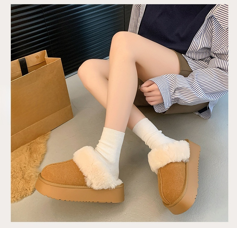 [ถอดออกได้] รองเท้าบูทหิมะขนเฟอร์พื้นหนาสุดเก๋และอบอุ่นที่ใส่ได้สองแบบ