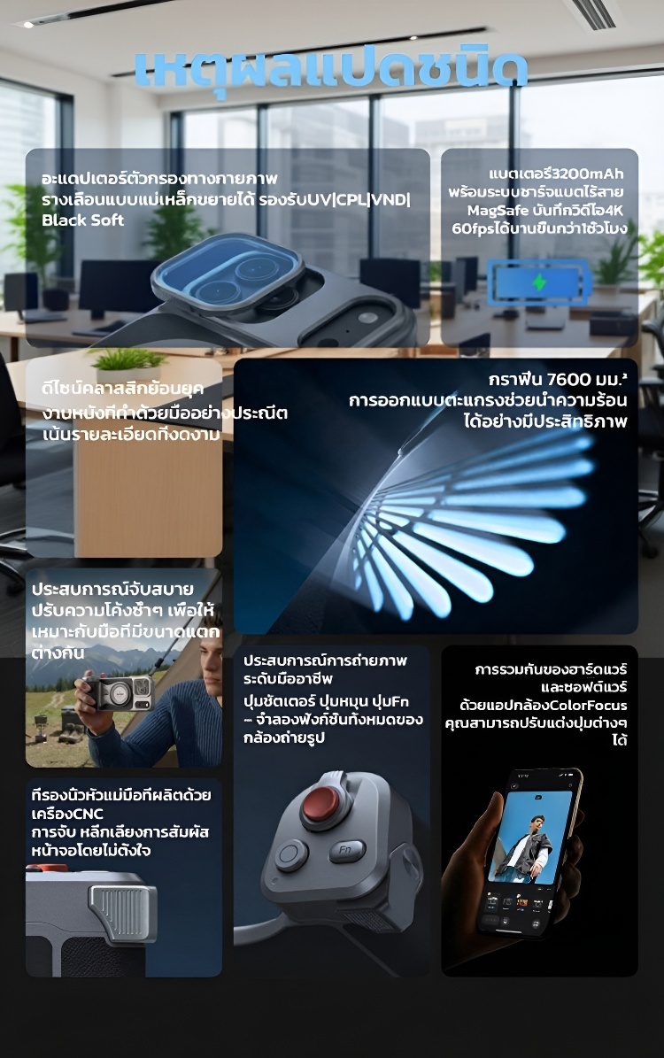 ✅ กริปถนัดมือ – ออกแบบมาให้จับกระชับ สบายมือ แม้ถ่ายนานก็ไม่เมื่อย!