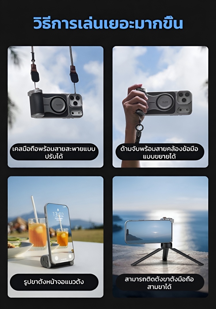 ✅ ขาตั้งและสายคล้อง – พร้อมต่อขาตั้งหรือคล้องคอได้ทันที!